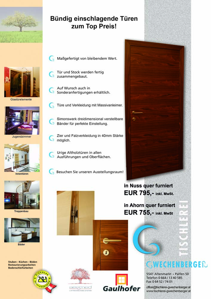 Aktuelles: Top-Türen zum Bestpreis bei Ihrem TischlerExperten aus Altenmarkt im Pongau